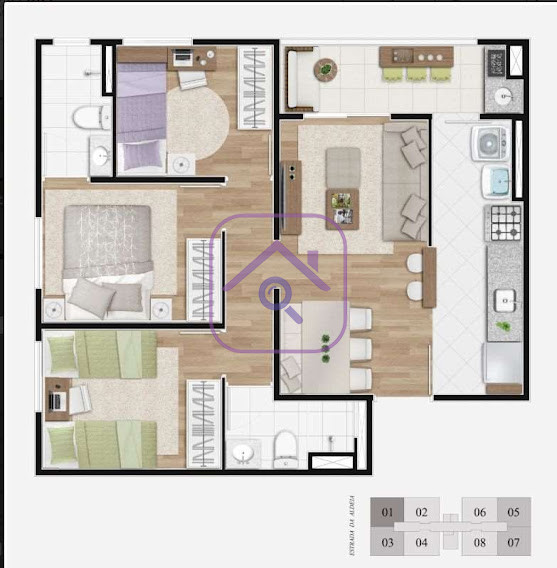 - 3 dormitórios com planejados e piso vinílico, sendo 1 suíte c/ painel para TV e criados-mudos.az