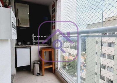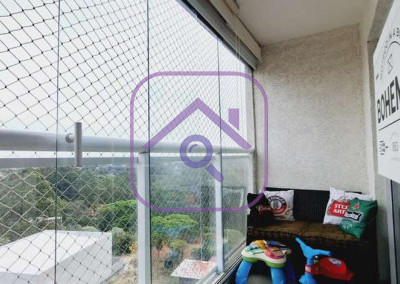 - Varanda fechada com vidro, bancada com pia e churrasqueira carvão.